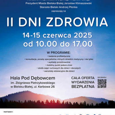 W dniach 14-15 czerwca 2025 roku, w godzinach 10.00-17.00 w Bielsku-Białej odbędą się II Dni Zdrowia. Miejscem wydarzenia jest Hala Pod Dębowcem im. Zbigniewa Pietrzykowskiego, przy ul. Karbowej 26.